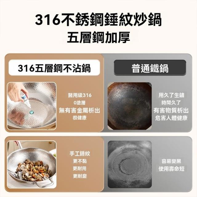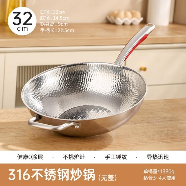 匠藝家居高質量 手工鍛造👍316不銹鋼炒鍋 不粘鍋 無毒不沾鍋 無塗層 炒鍋 炒菜鍋 煎鍋