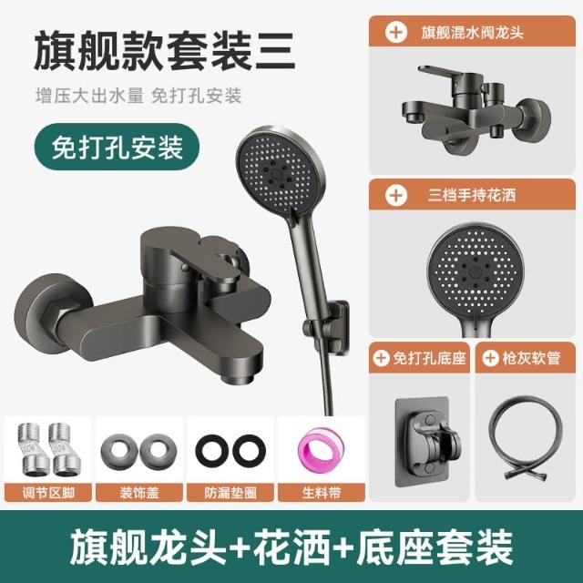 匠藝家居槍黑色花灑水龍頭 淋浴水龍頭 淋浴龍頭 沐浴龍頭 浴室水龍頭 冷熱水龍頭 浴室龍頭 加厚黃銅主體 強勁水壓