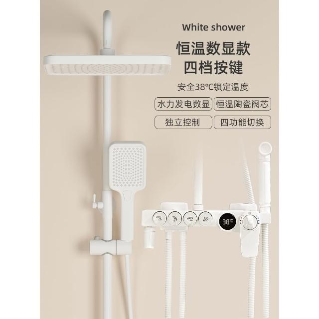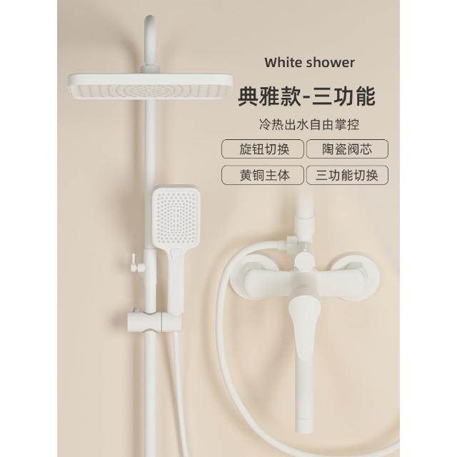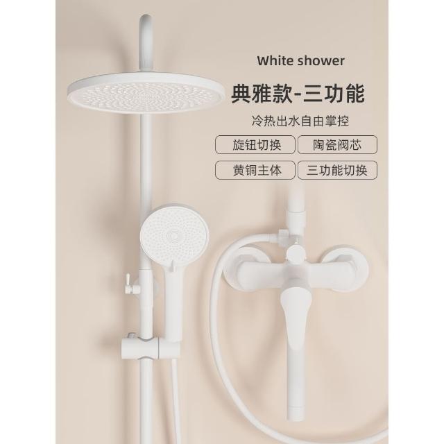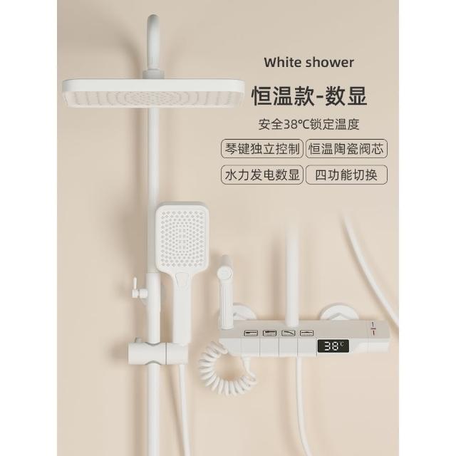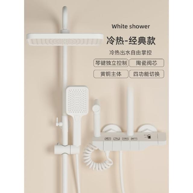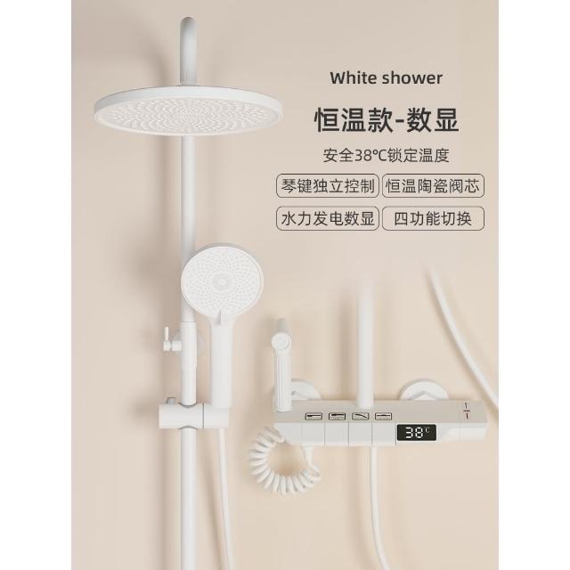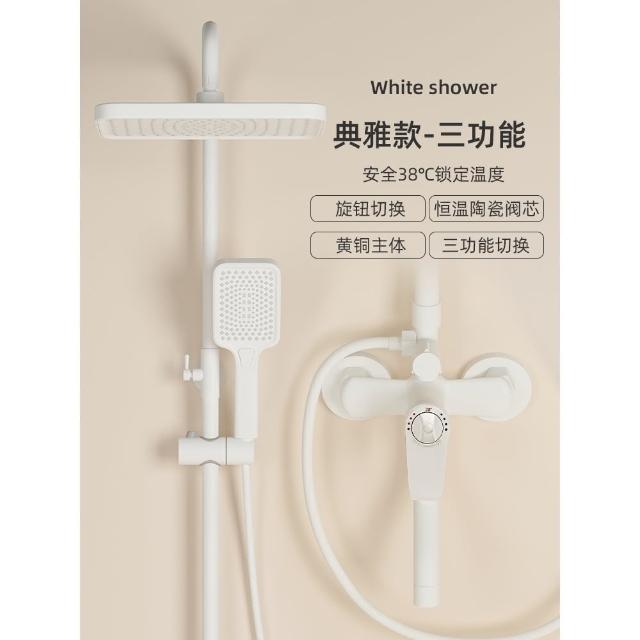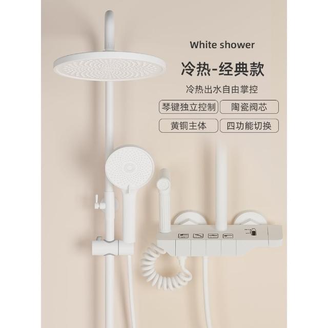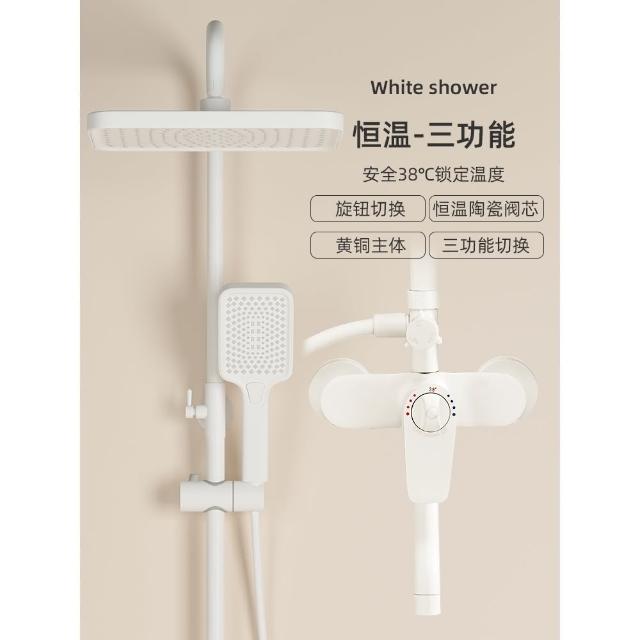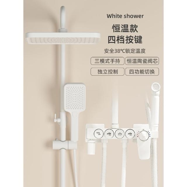 匠藝家居純白淋浴套裝 花灑蓮蓬頭組 蓮蓬頭 淋浴花灑 恆溫淋浴水龍頭 浴室水龍頭 鋼琴按鍵花灑 淋浴組