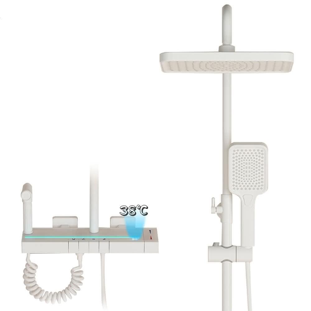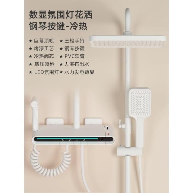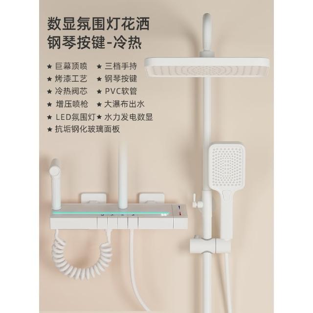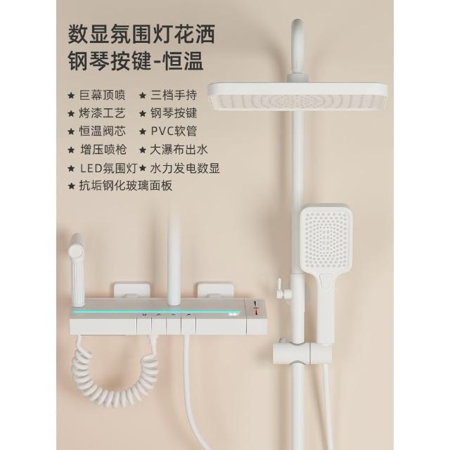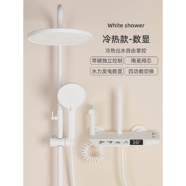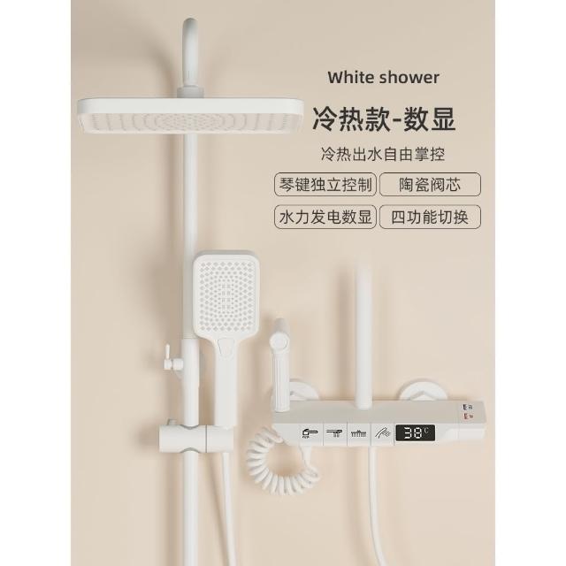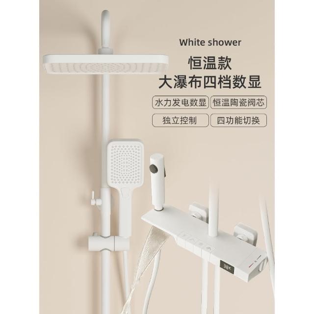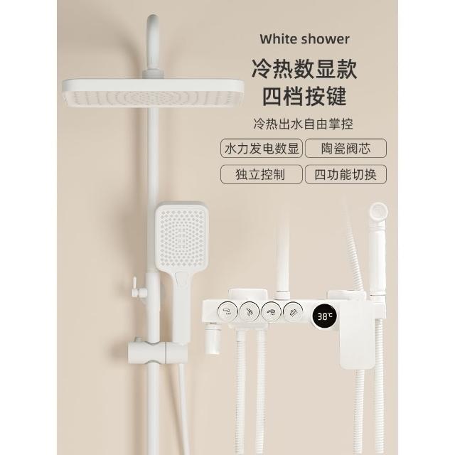 匠藝家居純白淋浴套裝 花灑蓮蓬頭組 蓮蓬頭 淋浴花灑 恆溫淋浴水龍頭 浴室水龍頭 鋼琴按鍵花灑 淋浴組
