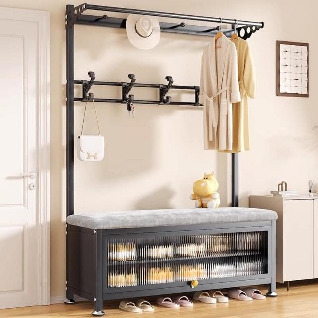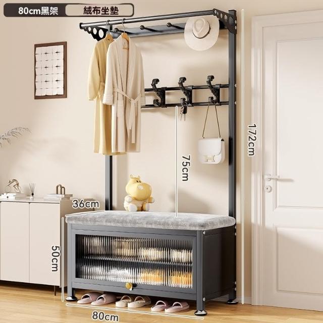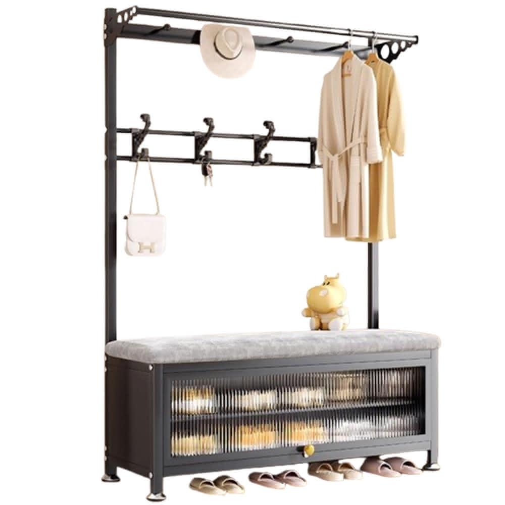 匠藝家居簡易落地衣帽架 臥室置物架 多功能掛衣服包架子 立式掛衣架鞋架一體 防水防銹 多根橫桿掛桿