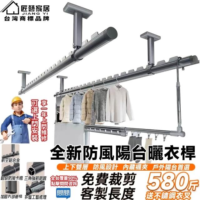 匠藝家居新升級防風晾衣架 上下雙桿晾衣桿 鋁合金曬衣架 陽台頂掛固定式晾衣架 超強承重 航空級鋁合金 防腐防鏽