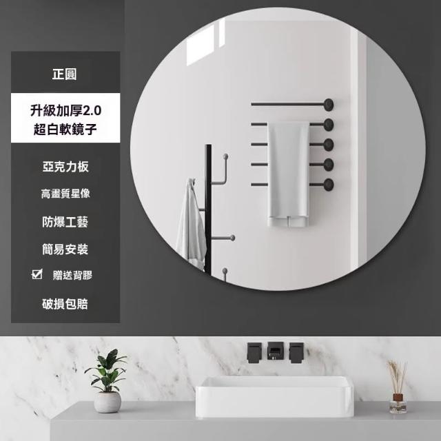 匠藝家居浴室軟鏡子 貼墻自粘 廁所鏡 免打孔鏡面 貼紙化妝鏡 粘貼墻面 高清圓形 雙層磨邊工藝