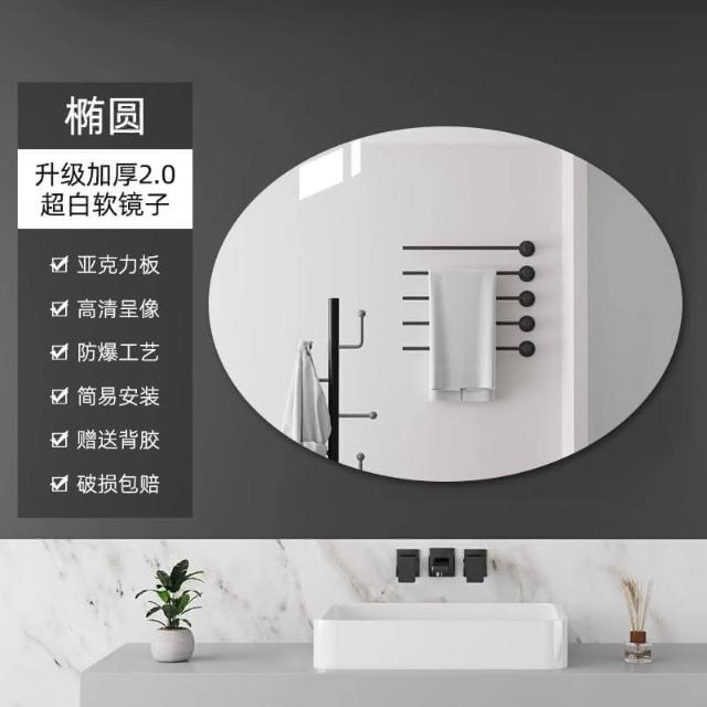 匠藝家居浴室軟鏡子 貼墻自粘 廁所鏡 免打孔鏡面 貼紙化妝鏡 粘貼墻面 高清圓形 雙層磨邊工藝
