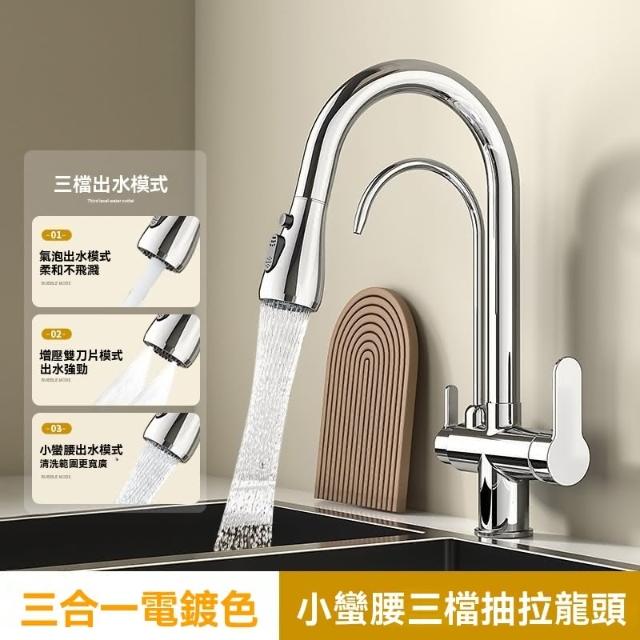 匠藝家居全銅體三合一純凈水龍頭 廚房抽拉冷熱龍頭 家用水槽洗菜盆增壓龍頭 水龍頭 帶抽拉功能 加厚黃銅