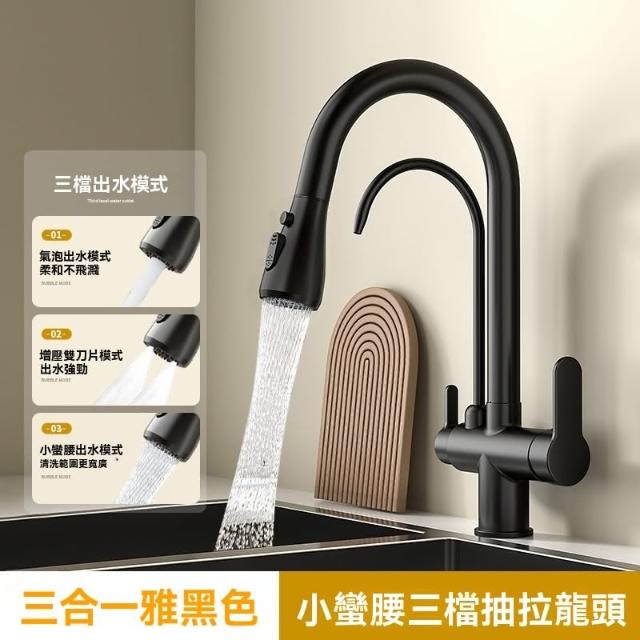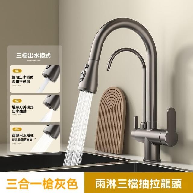 匠藝家居全銅體三合一純凈水龍頭 廚房抽拉冷熱龍頭 家用水槽洗菜盆增壓龍頭 水龍頭 帶抽拉功能 加厚黃銅