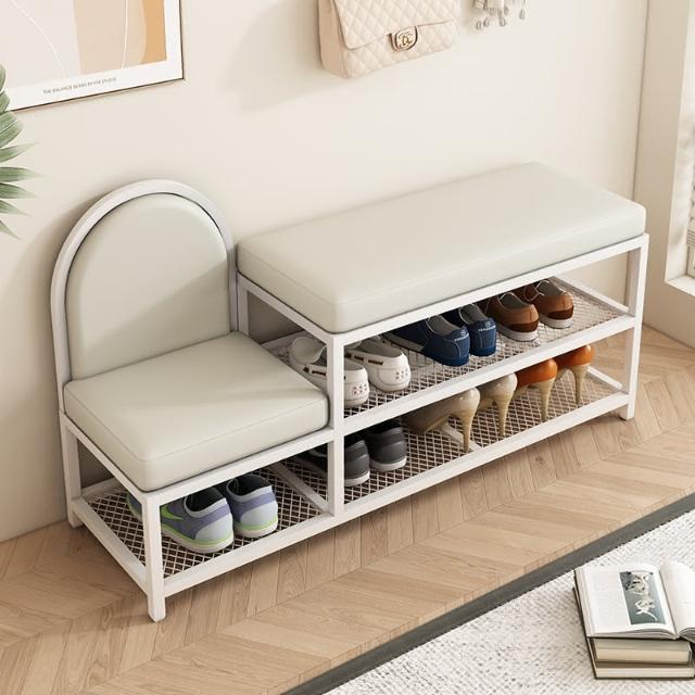 匠藝家居入戶換鞋凳 家用門口可坐鞋櫃 坐凳一體奶油風 長條穿鞋凳兒童鞋輕奢 鞋架 收納架 鐵藝框架 高溫烤漆