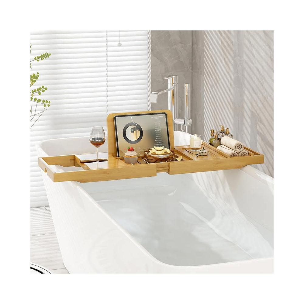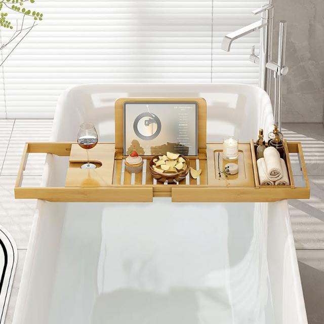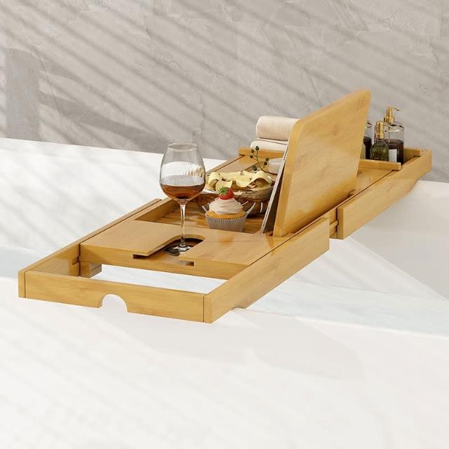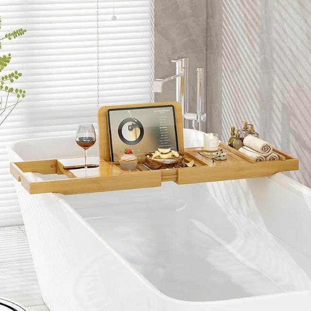 匠藝家居浴缸架 竹製浴缸架 浴缸置物架 伸縮置物架 多功能浴桶支架 浴缸收納置物架 平板架 泡澡桶置物架