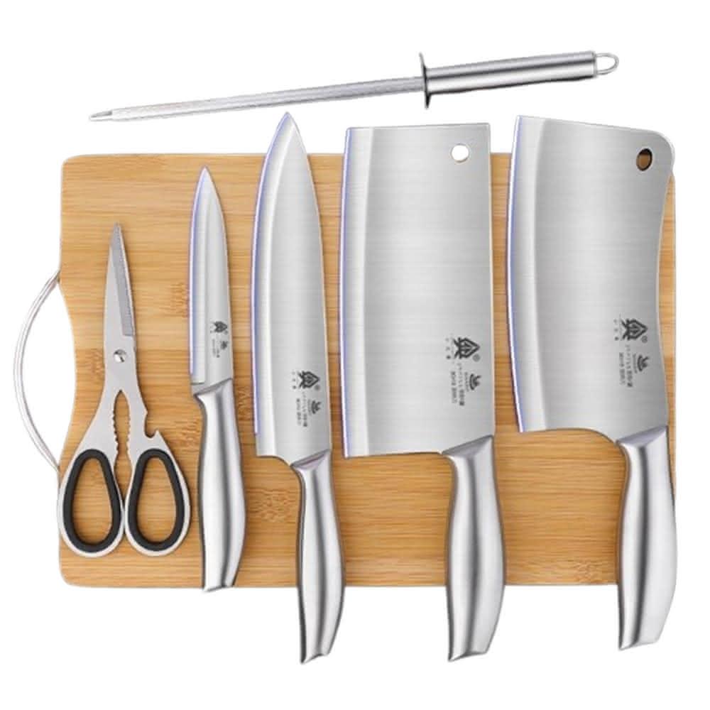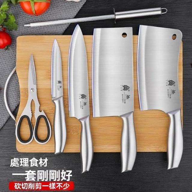 匠藝家居刀具套裝 家用不銹鋼菜刀 廚房全套刀具 專用切菜刀 砧板二合一組合 淬火工藝