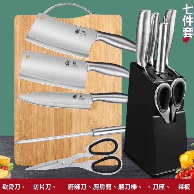 匠藝家居刀具套裝 家用不銹鋼菜刀 廚房全套刀具 專用切菜刀 砧板二合一組合 淬火工藝