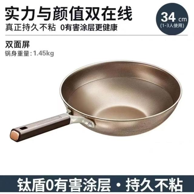匠藝家居鈦鍋 鈦炒金鍋 煎鍋 炒鍋 炒菜鍋 不粘鍋 雙面鈦鍋 不鏽鋼炒鍋 鈦合金鍋具 健康無塗層 電磁爐煤氣竈通用