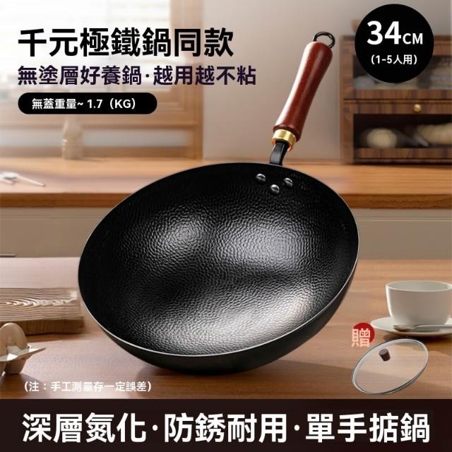 匠藝家居章丘鐵鍋 不沾鍋 炒鍋 34cm 老式炒鍋 炒菜鍋 煎鍋 家用手工鍛打無塗層炒鍋 適用燃氣爐