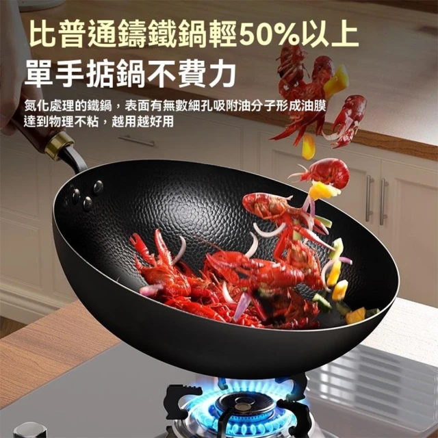 匠藝家居章丘鐵鍋 不沾鍋 炒鍋 34cm 老式炒鍋 炒菜鍋 煎鍋 家用手工鍛打無塗層炒鍋 適用燃氣爐