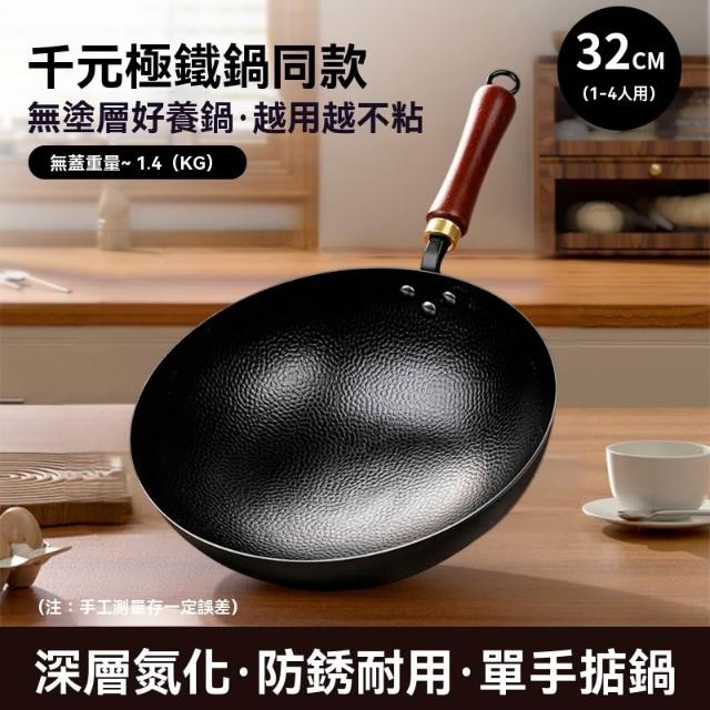 匠藝家居章丘鐵鍋 不沾鍋 炒鍋 34cm 老式炒鍋 炒菜鍋 煎鍋 家用手工鍛打無塗層炒鍋 適用燃氣爐