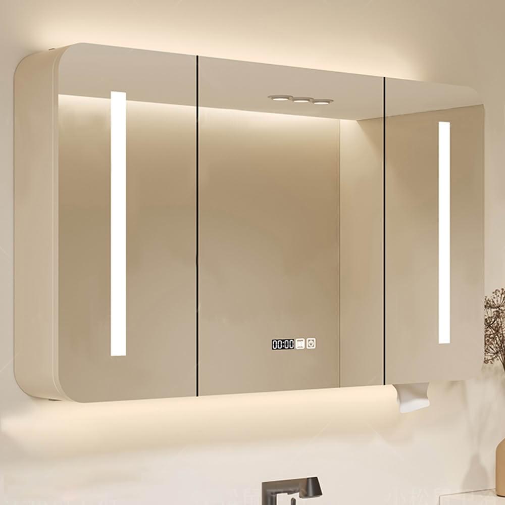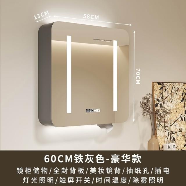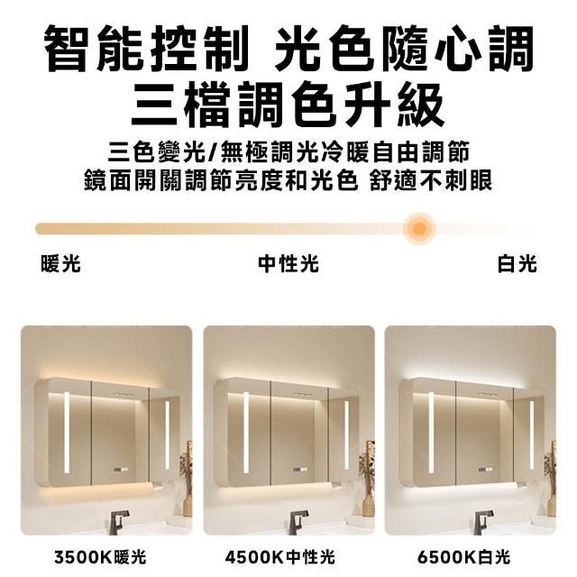 匠藝家居110V圓角智能浴室鏡櫃 浴室鏡櫃 掛牆式鏡面櫃 廁所置物櫃 衛浴化妝鏡 浴櫃 碳鋼材質 三色補光燈