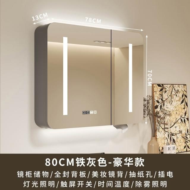 匠藝家居110V圓角智能浴室鏡櫃 浴室鏡櫃 掛牆式鏡面櫃 廁所置物櫃 衛浴化妝鏡 浴櫃 碳鋼材質 三色補光燈