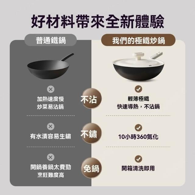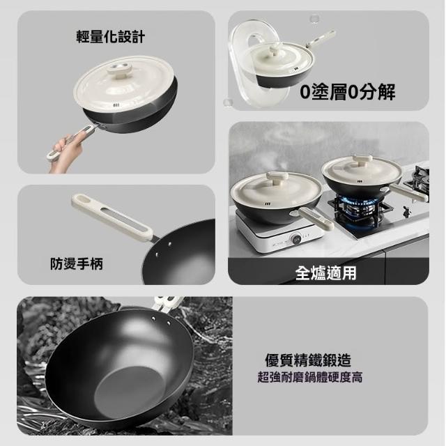 匠藝家居鐵鍋 炒鍋 無塗層不粘鍋 級鐵炒鍋 精鐵鍋 免開鍋即用 單手可顛鍋 燃氣爐煤氣爐ih爐通用