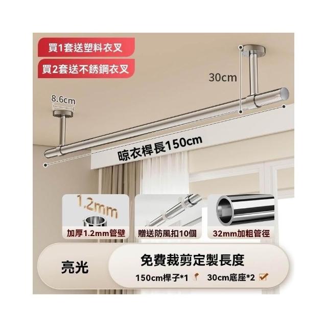 匠藝家居304不鏽鋼曬衣架 陽台固定式晾衣桿 曬衣桿 掛衣服架 單桿晾衣架 曬衣桿 承重300斤 加厚3.2mm 安裝可咨詢