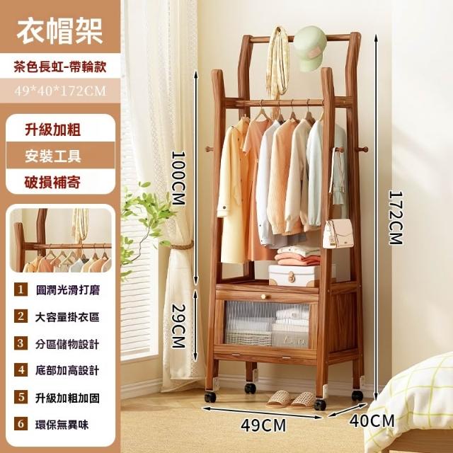 匠藝家居衣帽架 掛衣架 落地衣帽架 開放式掛衣架 收納衣帽架 楠竹衣櫥 落地衣架 防塵儲物 360°可移動