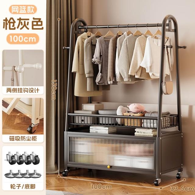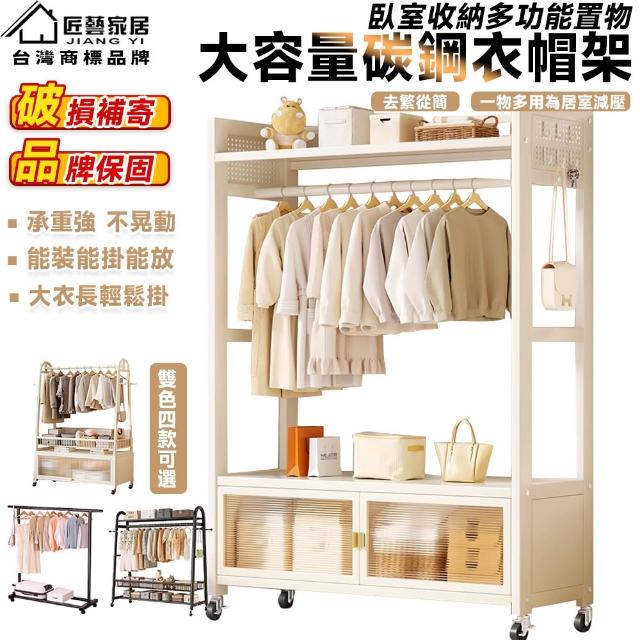 匠藝家居碳鋼多功能收納衣帽架 掛衣架 晾衣架 可移動衣帽桿 臥室家用衣服收納櫃 碳鋼材質更堅固 收納掛衣多合一