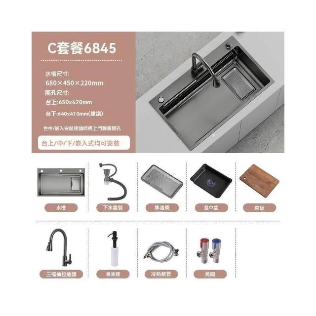 匠藝家居集渣抗刮壓紋水槽 304不鏽鋼大單槽 納米水槽 洗手槽 洗碗槽 洗菜池 廚房水槽 5mm加厚面板 抗菌抗油污