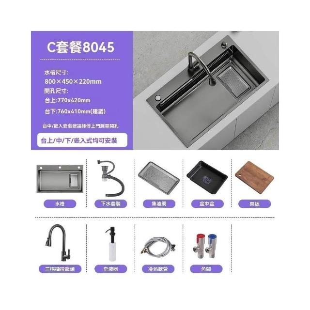 匠藝家居集渣抗刮壓紋水槽 304不鏽鋼大單槽 納米水槽 洗手槽 洗碗槽 洗菜池 廚房水槽 5mm加厚面板 抗菌抗油污