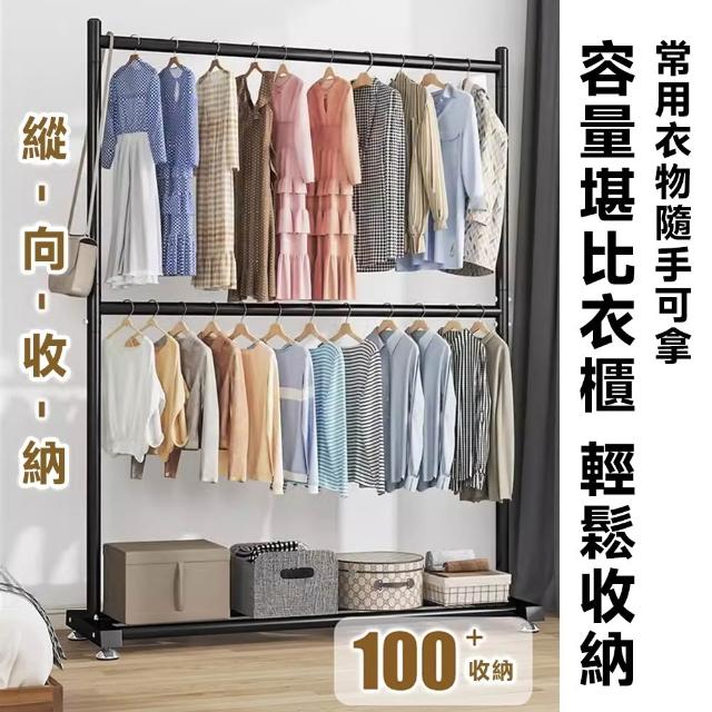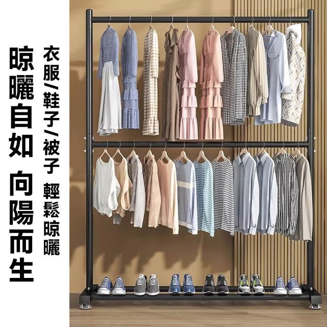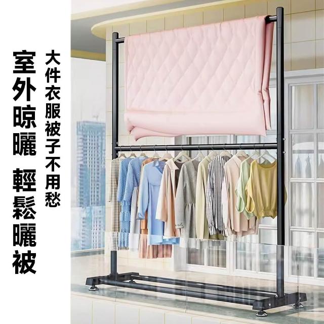 匠藝家居碳鋼雙層晾衣架 掛衣架 曬衣架 衣架 加粗掛衣架 臥室掛衣衣帽架 室內室外通用 底腳可調高