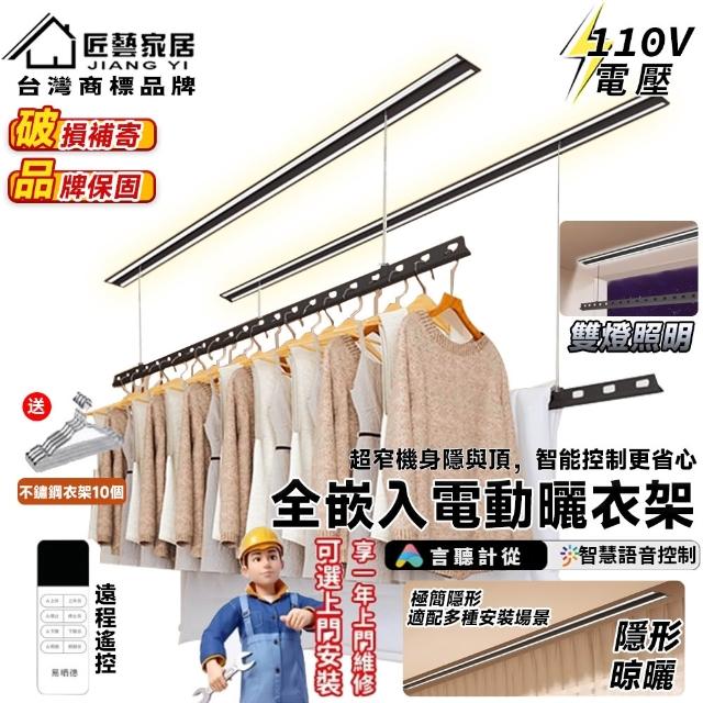 匠藝家居110V隱形照明電動晾衣架 曬衣架 電動曬衣架 升降晾衣架 電動晾衣架 陽台燈晾衣桿 全嵌入隱形式