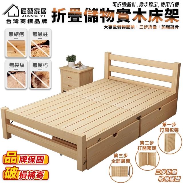 匠藝家居可折疊雙抽儲物床架 實木床架 單人床/雙人床 加大單人床架 便攜床架 折疊床架 儲物床架 雙抽屜大容量