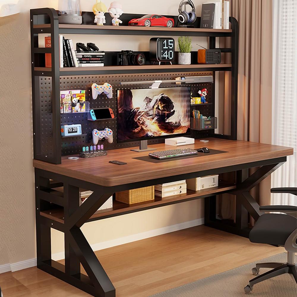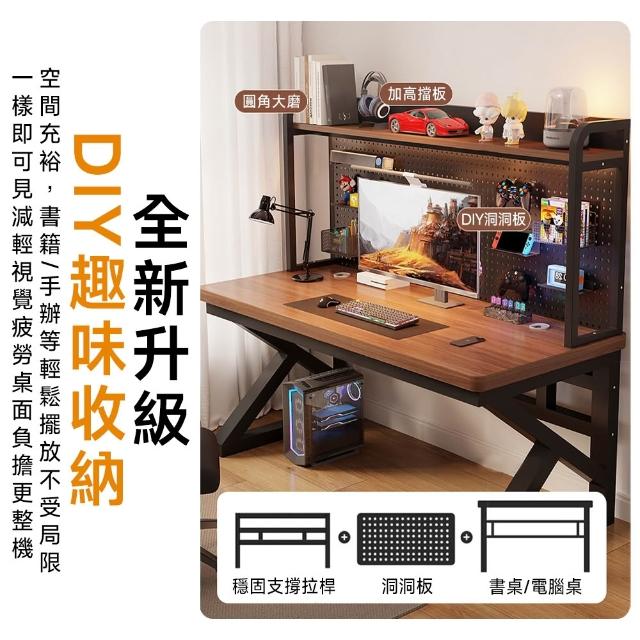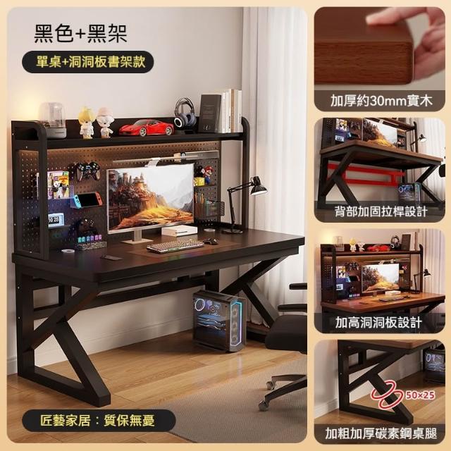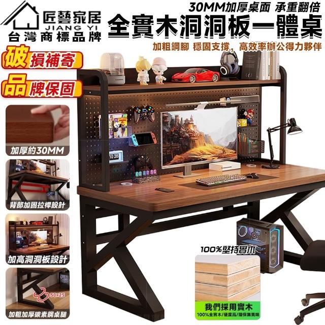 匠藝家居書桌書架一體桌 洞洞板實木電競桌 30MM加厚桌面 全實木進口南洋楹木 辦公桌/電腦桌/工作桌