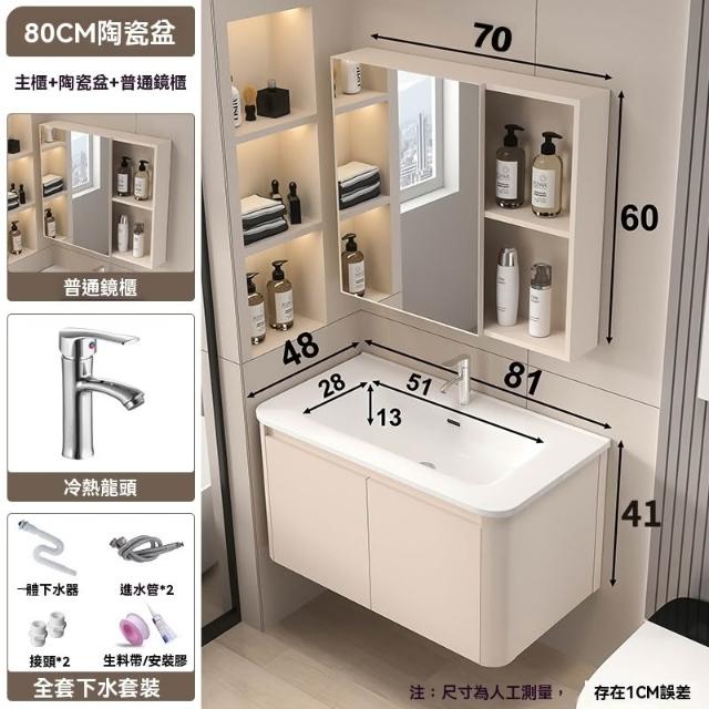 匠藝家居奶油色陶瓷盆壁掛浴室櫃 浴室收納櫃 鏡櫃 洗漱臺 洗臉盆 洗手盆 浴室吊櫃 陶瓷一體洗漱台 全套龍頭
