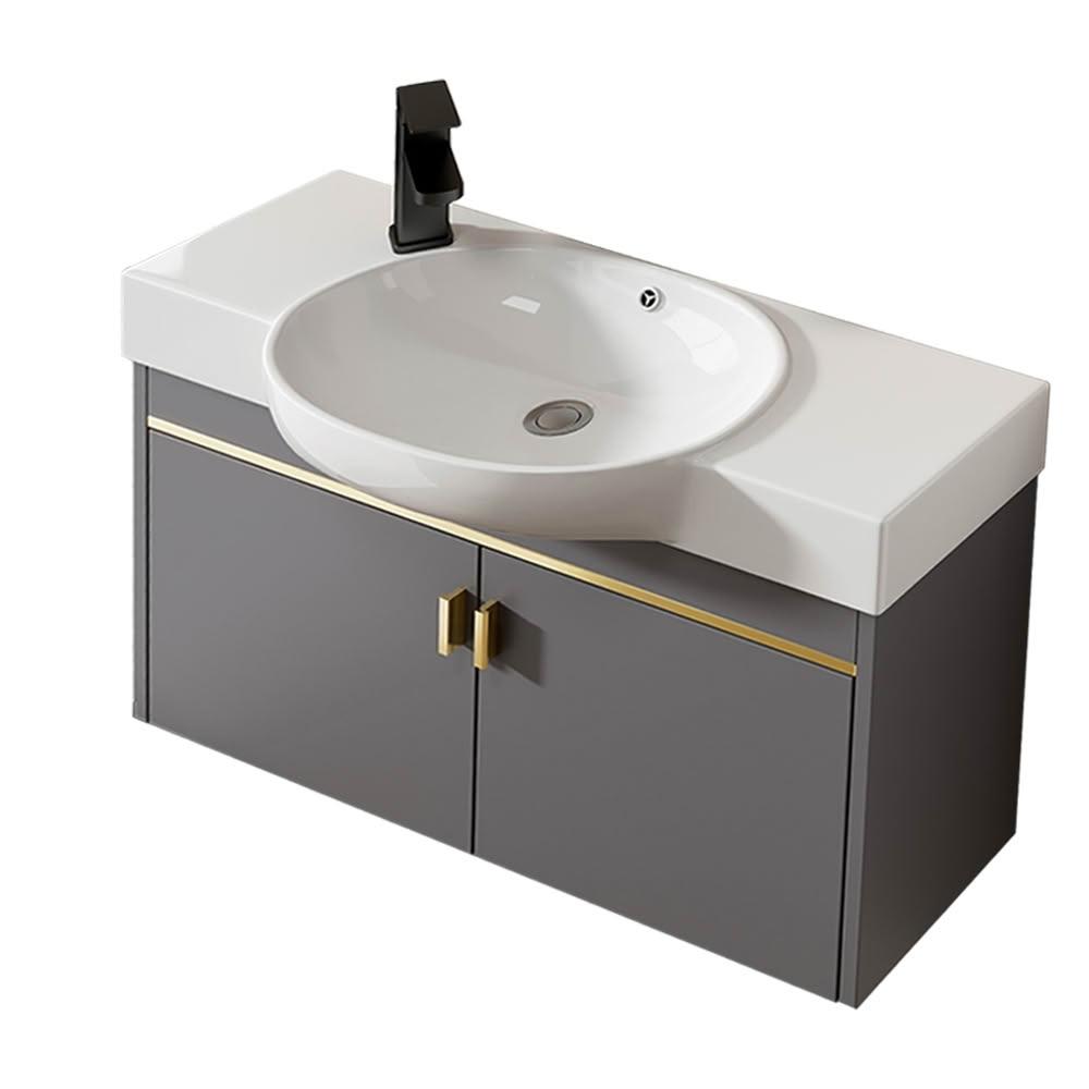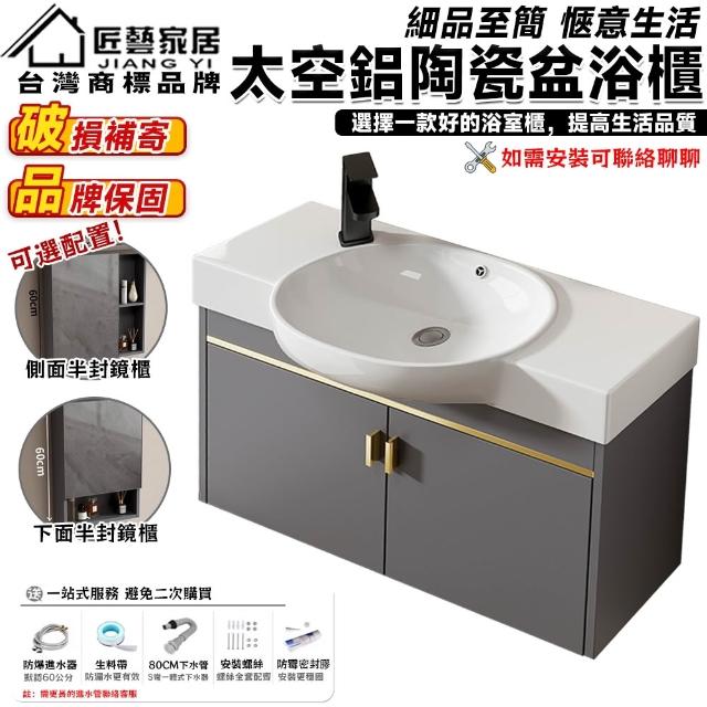 匠藝家居小戶型太空鋁掛墻式浴室櫃 浴櫃 浴室收納櫃 衛生間洗手盆 洗臉盆 陶瓷一體洗漱台 破損包賠