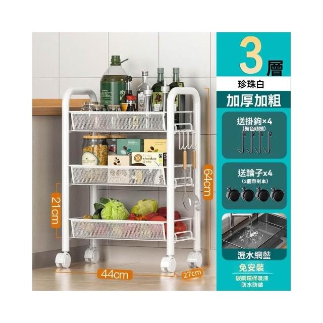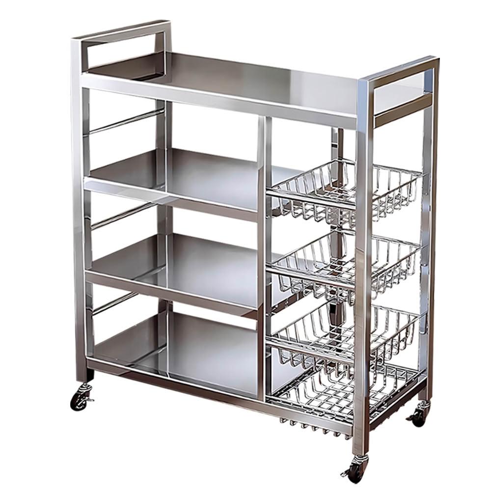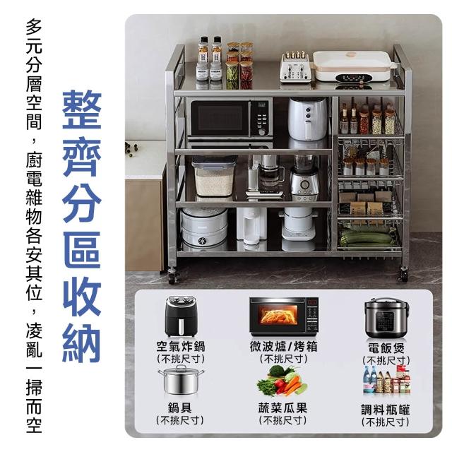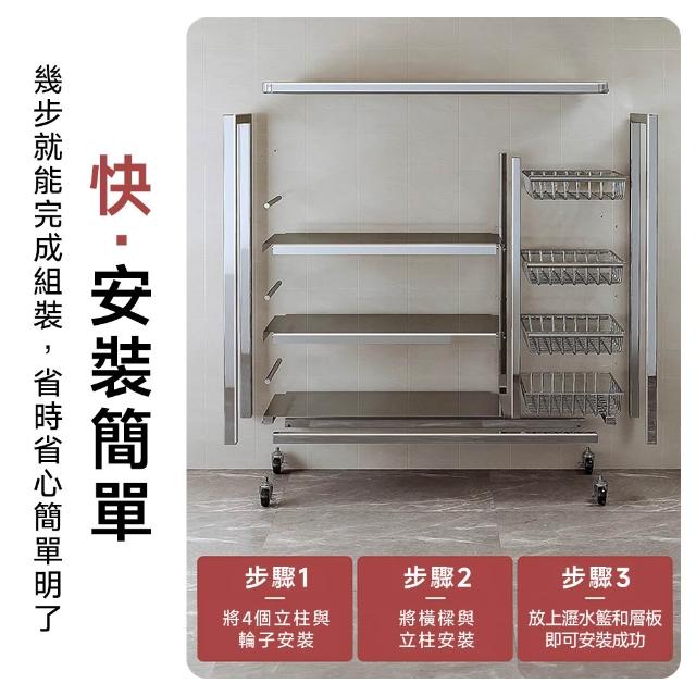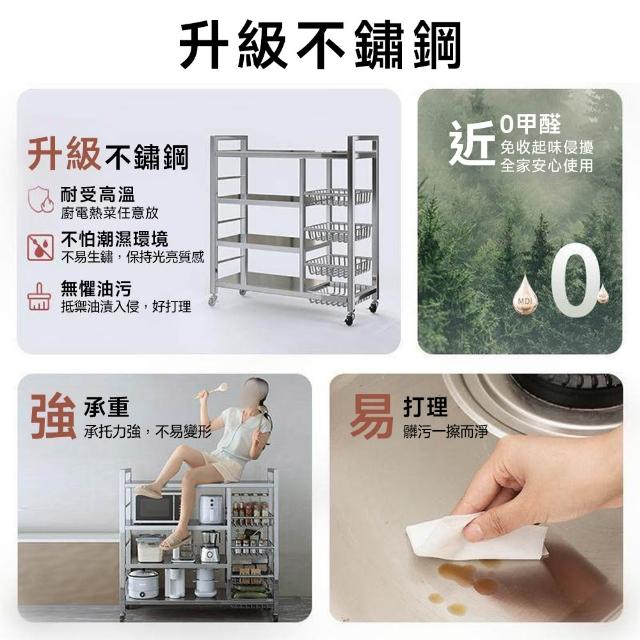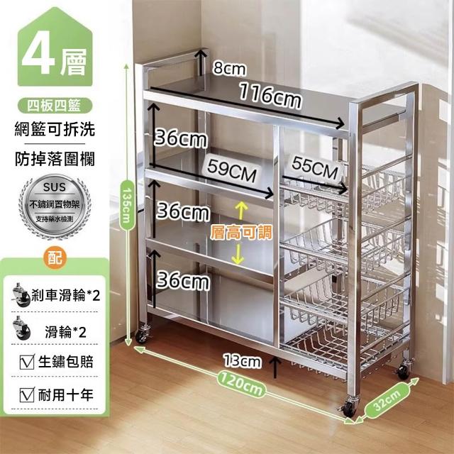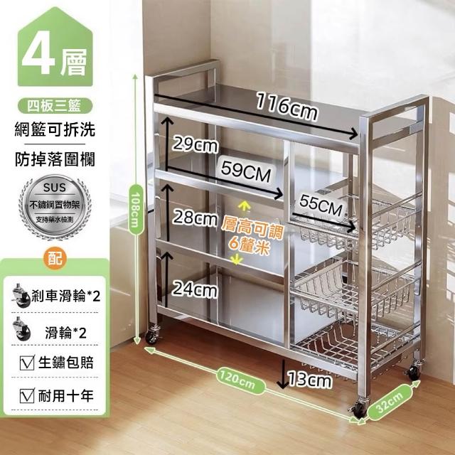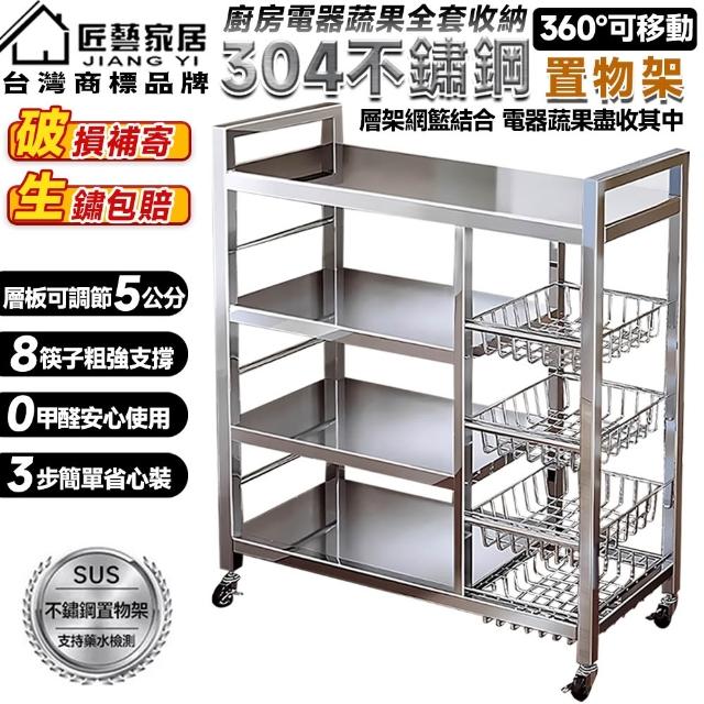 匠藝家居304不鏽鋼廚房置物架 廚房收納櫃 不鏽鋼層架 層板可調節 網籃可拆卸 無漆架體 加厚鋼架