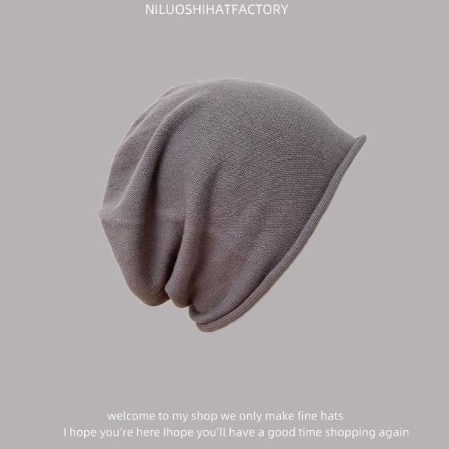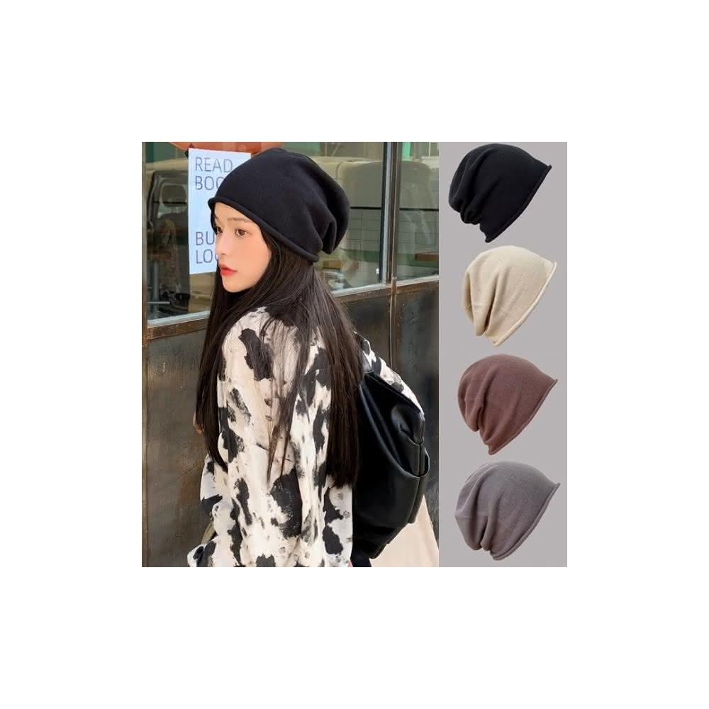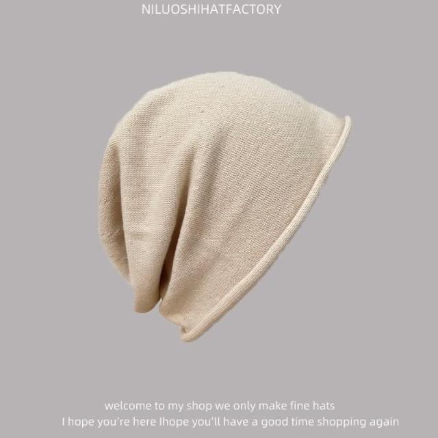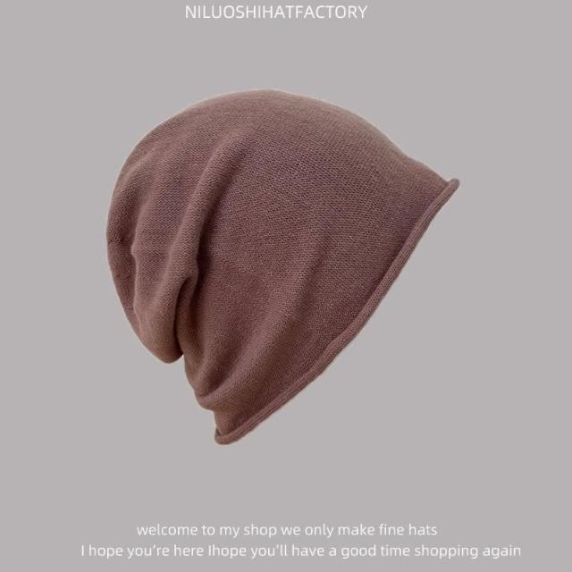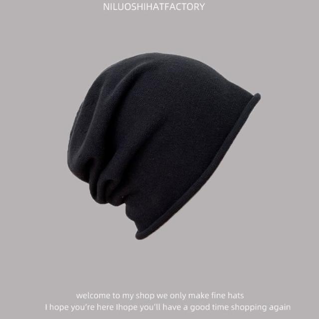 日系寬鬆顯脸臉小時尚純色捲邊堆堆帽 針織帽 冷帽 月子帽 百搭堆堆帽 毛帽 包頭帽 73618(堆堆帽 針織帽 冷帽 月子帽)