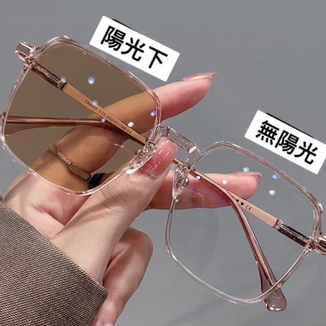 變色眼鏡高級顯白冷茶色平光眼鏡女ins高顏質女顯瘦素顏超輕防藍光平光鏡74284