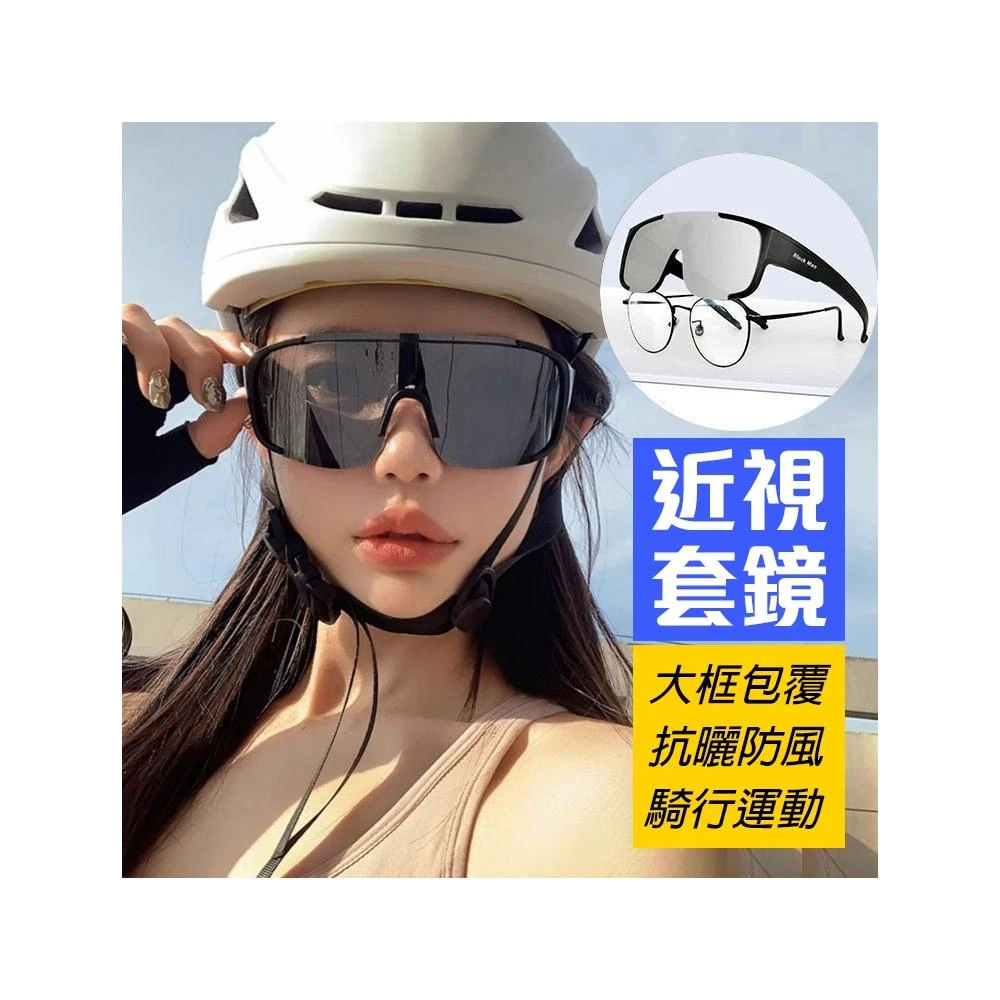 套镜 近視套镜 騎行機車 腳踏車 防風釣魚大框墨鏡 UV400防曬墨鏡 跑步登山運動墨鏡 可套近視太陽眼镜74299