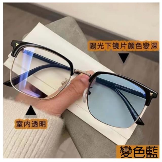 韓版新款變色眼鏡斯文理工男痞帥半框復古時尚個性質感防藍光平光變色眼鏡 74320