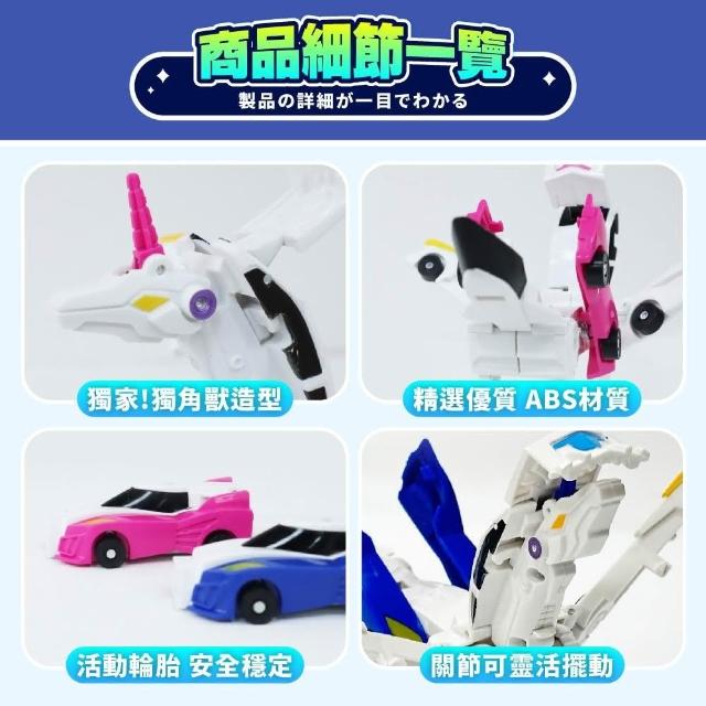 獨角獸變形小汽車(獨角獸變形玩具 變形飛翼獨角獸 玩具車 彈跳變形機器人)