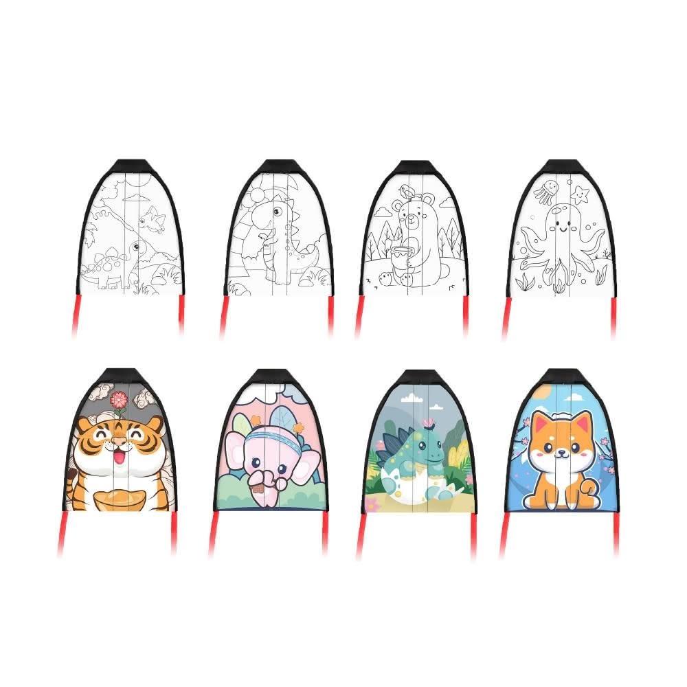 彈射風箏DIY塗鴉(彈射風箏 風箏 兒童風箏 可愛卡通兒童風箏 橡皮筋彈力風箏)