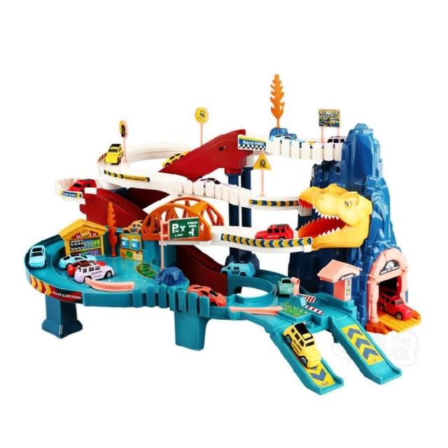 汽車軌道樂園(恐龍電動軌道 電動軌道玩具 闖關大冒險 汽車大樓 兒童玩具)