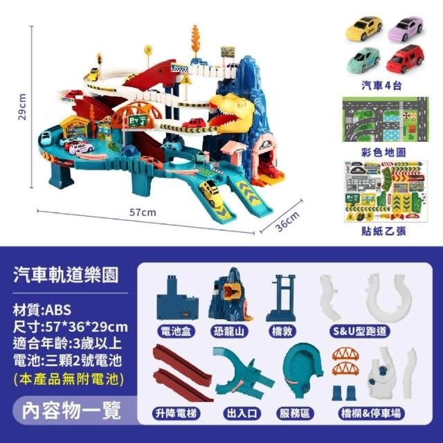 汽車軌道樂園(恐龍電動軌道 電動軌道玩具 闖關大冒險 汽車大樓 兒童玩具)
