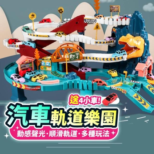 汽車軌道樂園(恐龍電動軌道 電動軌道玩具 闖關大冒險 汽車大樓 兒童玩具)