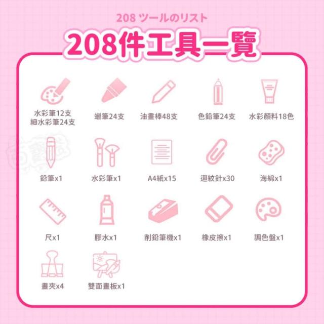畫筆208件組(彩色筆禮盒組 水彩 蠟筆 水彩筆 繪畫組 208件組畫筆套裝彩鉛)