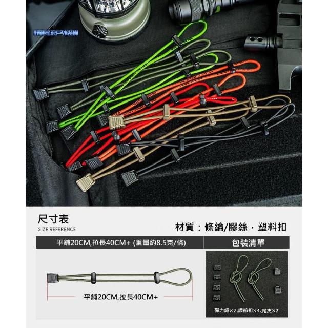 野戰搖滾 SECTOR SEVEN 多用途戶外彈力綁繩(一組兩條MOLLE扣具背包擴展掛扣登山扣傘繩彈力繩掛勾固定繩)
