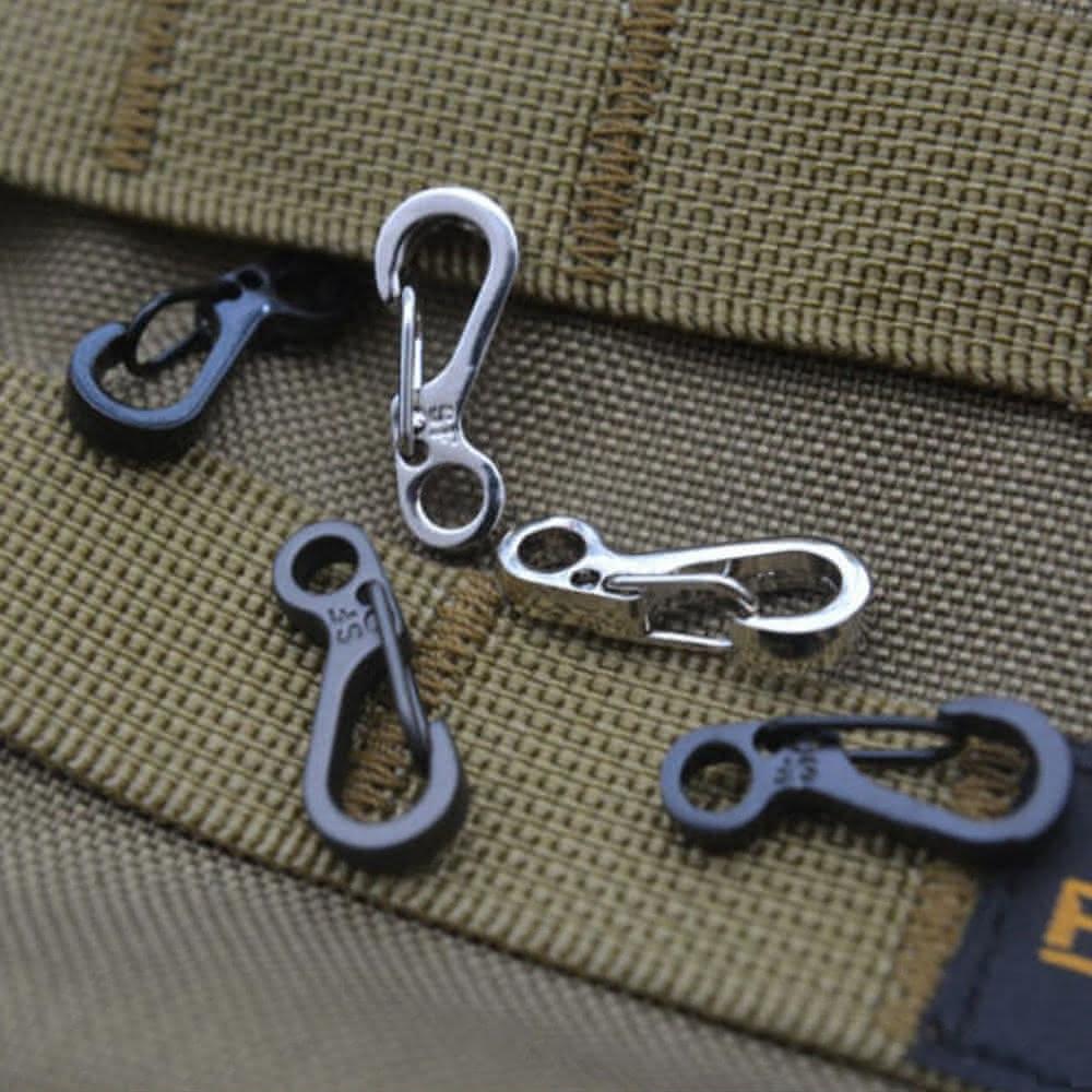 野戰搖滾-生存遊戲 SF 迷你多用途彈簧掛扣、掛勾、扣具 黑色、銀色 可搭配傘繩 戰術背包 登山戶外