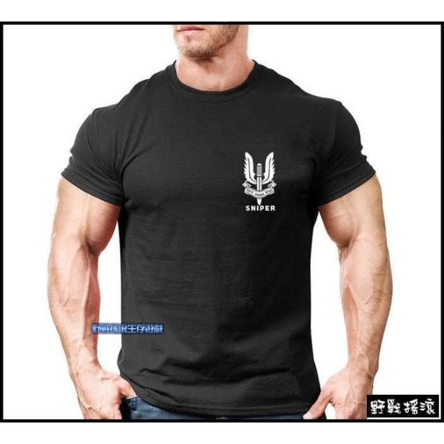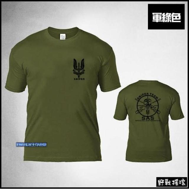 野戰搖滾 SAS 英軍空降特勤隊戰術T恤(黑色軍綠色狙擊手小隊短袖T恤純棉排汗衣迷彩服特警勤務)