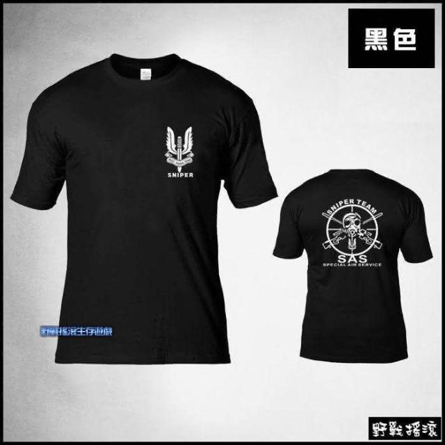 野戰搖滾 SAS 英軍空降特勤隊戰術T恤(黑色軍綠色狙擊手小隊短袖T恤純棉排汗衣迷彩服特警勤務)