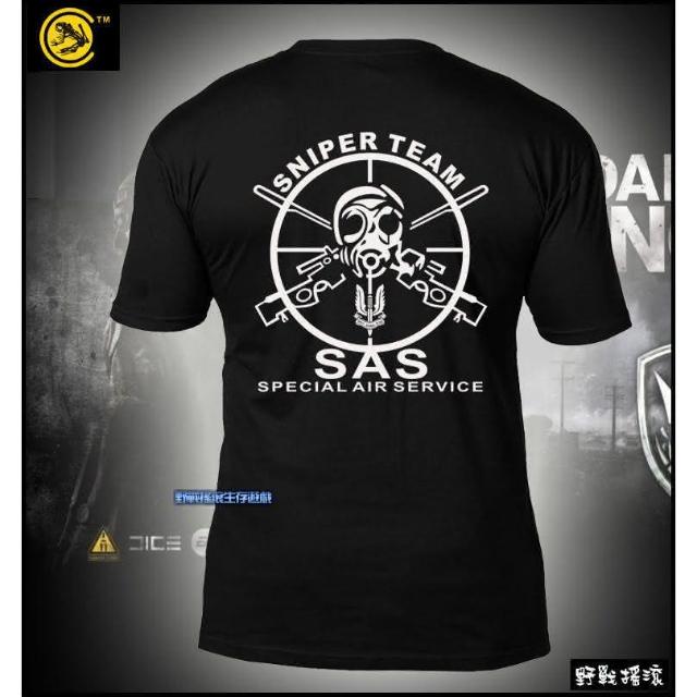 野戰搖滾 SAS 英軍空降特勤隊戰術T恤(黑色軍綠色狙擊手小隊短袖T恤純棉排汗衣迷彩服特警勤務)