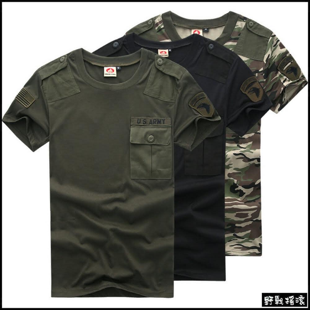 野戰搖滾 美軍101 空降師迷彩T恤(黑色叢林迷彩軍綠色迷彩T恤戰術T恤短袖T恤純棉排汗衣工作服迷彩服)