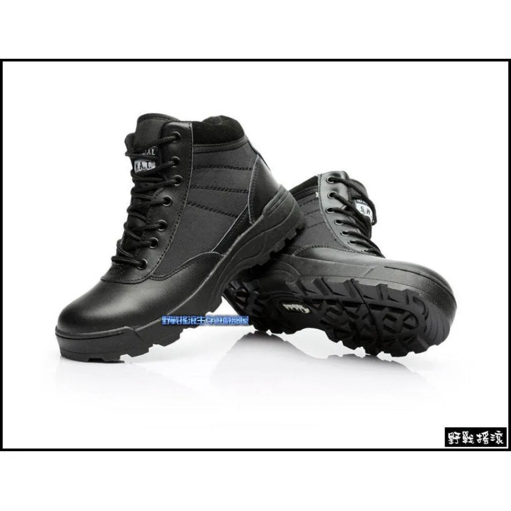 野戰搖滾 SWAT 特警戰術短筒軍靴-側拉式拉鍊(黑色短靴登山靴工作靴特警靴保全戰術靴工作鞋低筒沙漠靴)